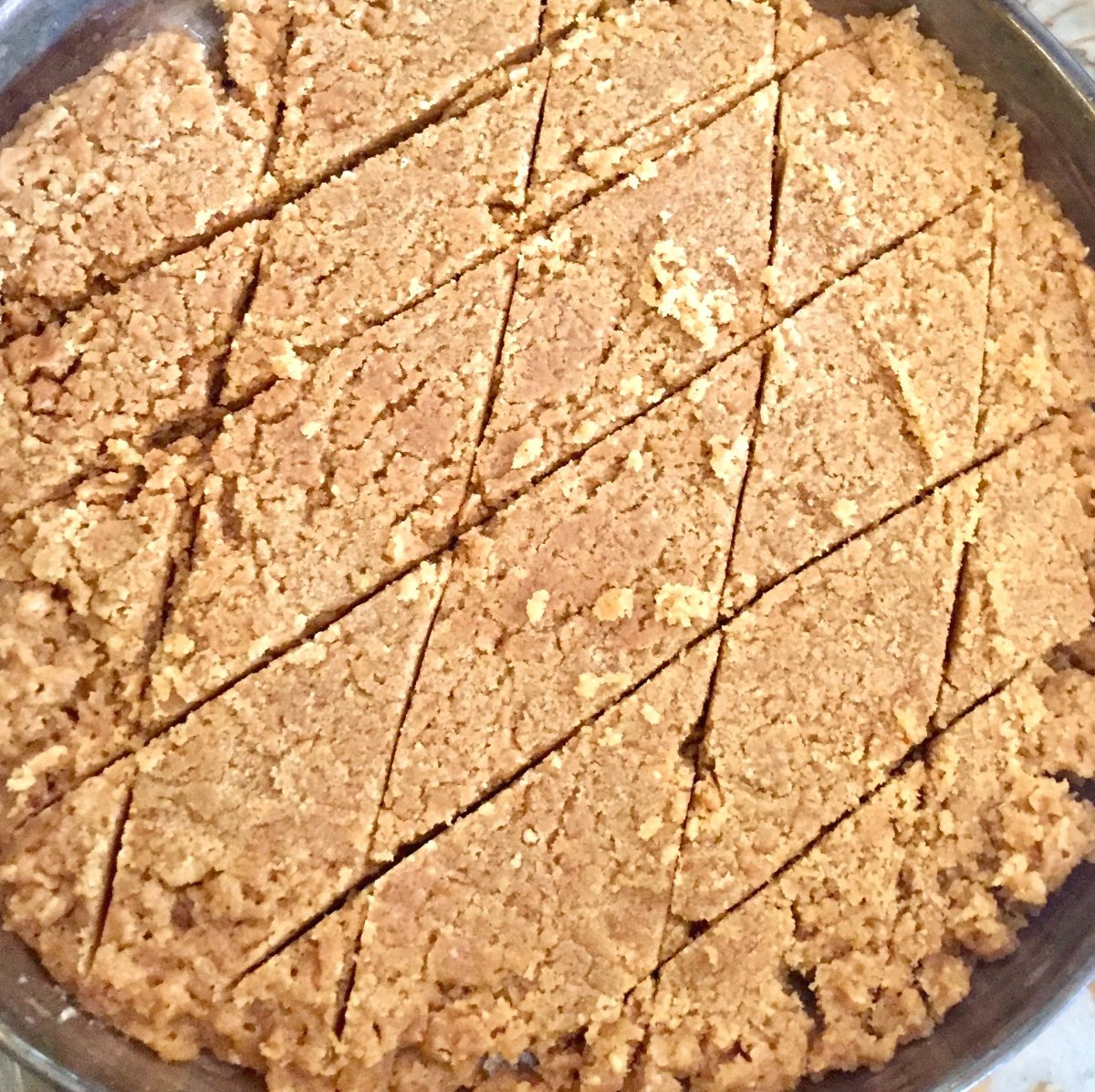 I have wanted to make mysore pak, a melt in your mouth, goodness of ghee and sugar sweet for ages now. The first time I tried it, it didn’t go too well (see recipe notes for what happened). But it was at the back of my mind, that I had to conquer it. And I think today was a small victory! Thanks to moral support, recipe, and videos from mom and my sister, I made it, and it was easier than I thought!