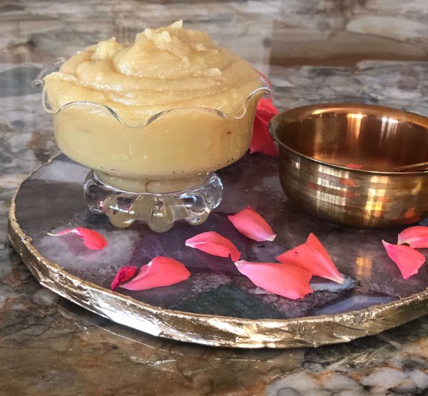 - When all the ghee has been added, at some point the halwa would release the ghee it has absorbed. At this stage, it's ready!