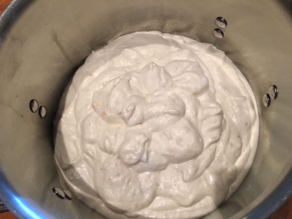 - Remove to a big 5 or 6 quart pot. You can tell that the batter is really fluffy, the texture like butter.