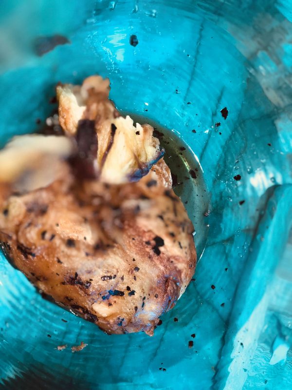 - Remove to a plate/bowl to cool; when cool enough to handle, roughly remove the skin with your hands or with a fork/knife. A few charred spots of skin is okay